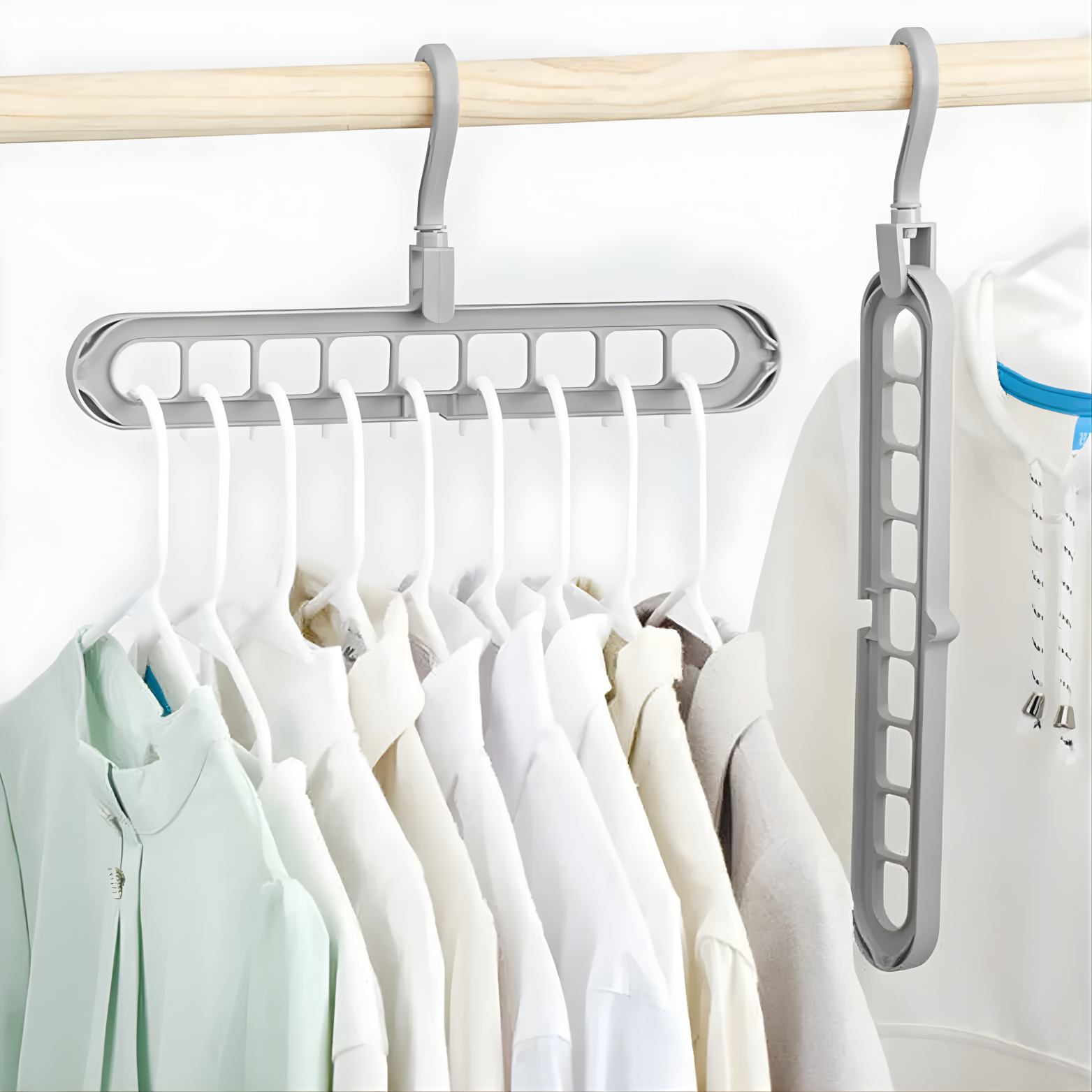 Dolap içinde kıyafetleri dikey şekilde düzenleyerek daha az yer kaplamalarını sağlar. Tek askıda birden fazla kıyafet asılmasına yardımcı olur ve dolapta ferah bir alan oluşturur